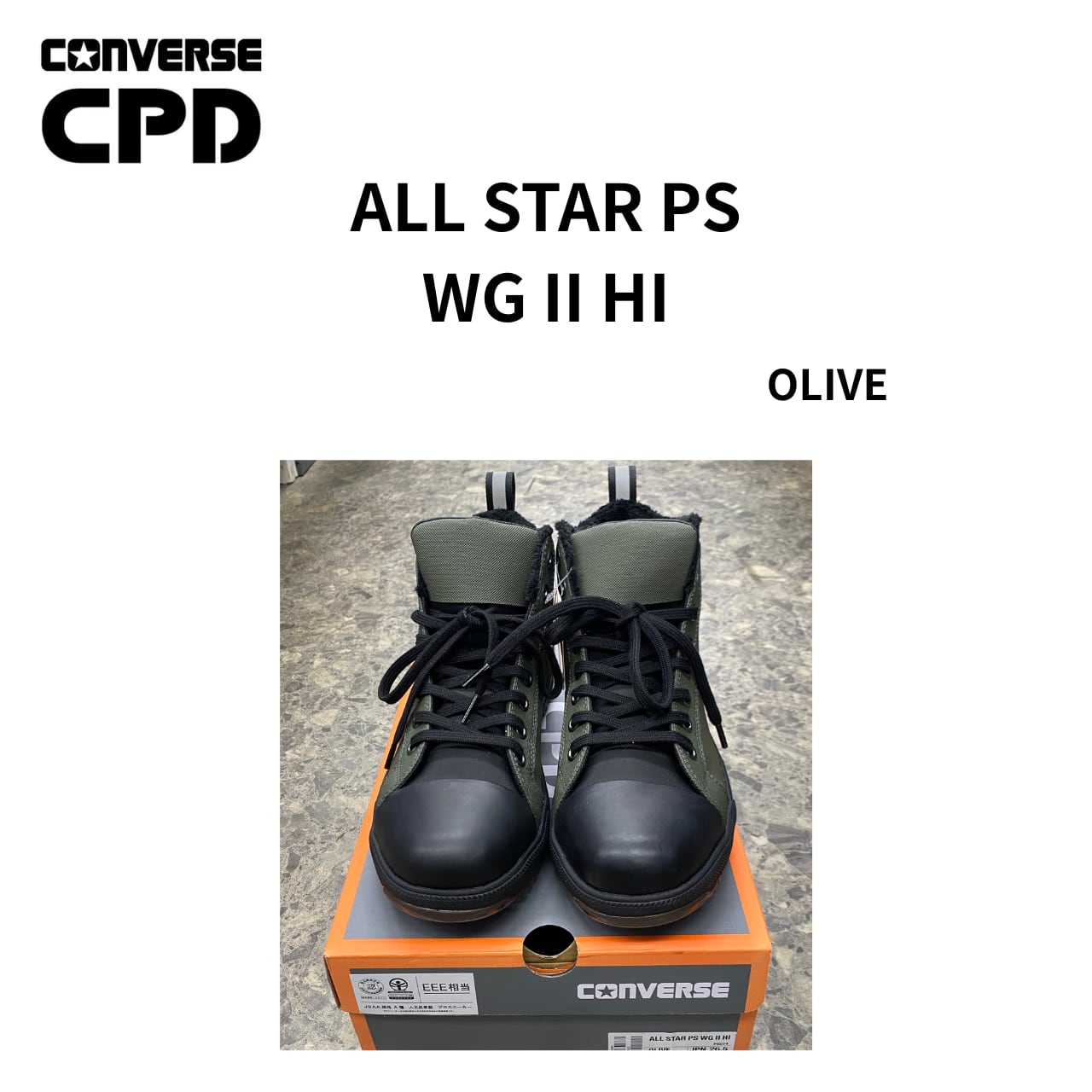 オールスターPSをベースに、アッパーには撥水加工を施したシンセティックレザーを採用し、水濡れのし易い場面でも快適に作業が出来る撥水機能を搭載。